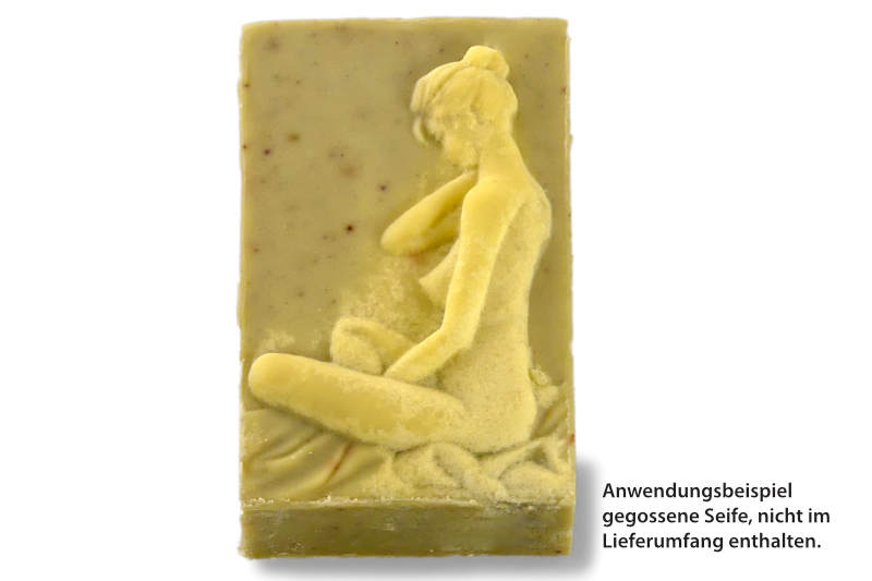 Es wird hier nur der Silikoneinleger verkauft - die Seifen sind Anschauungsbeispiele zur Anwendung. Eine geeignete Form um den Einleger anzuwenden ist nicht im Lieferumfang enthalten.