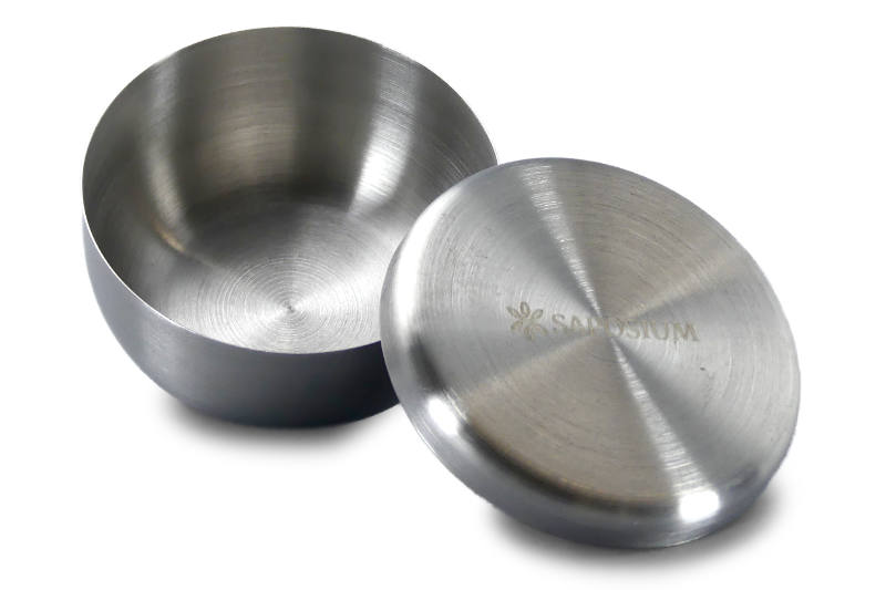 Diese Schale aus mattem Edelstahl hat einen Deckel, damit die Rasierseife nach Gebrauch auch staubfrei aufbewahrt werden kann. Für die Reise würde ein Gummiband ausreichen und Mann hat seine Rasierseife auch immer dabei.