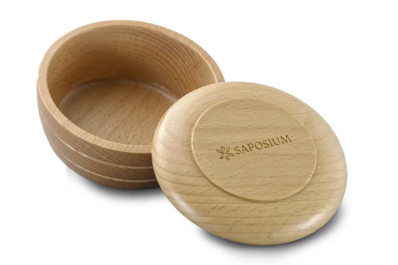 Diese Schale aus Buchenholz hat einen Deckel, damit die Rasierseife nach Gebrauch auch staubfrei aufbewahrt werden kann. Für die Reise würde ein Gummiband ausreichen und Mann hat seine Rasierseife auch immer dabei.