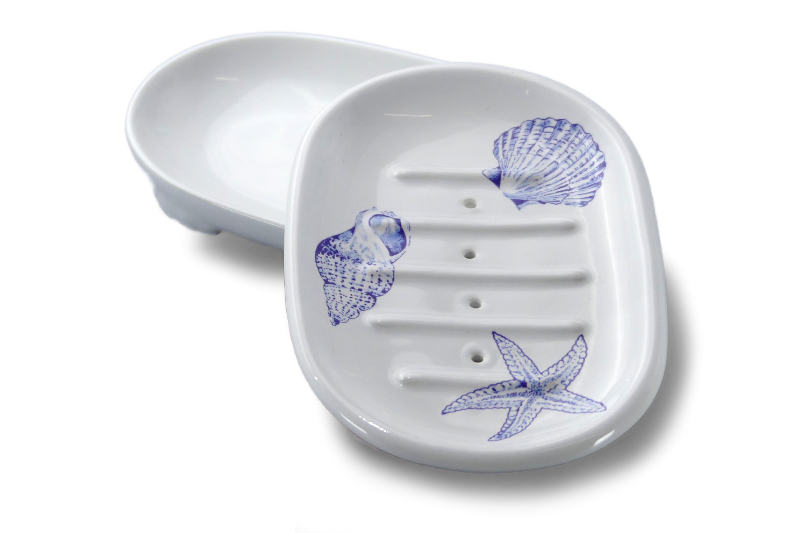 Das moderne maritime Design sorgt für einen Hingucker auf einem schlichten Waschbecken. Die maritimen Elemente in blau sind nicht erhaben. Die Seifenschale aus Porzellan ist 2-teilig. So kann die Seife nach jeder Verwendung gut abtropfen, das Wasser fließt in die untere Schale und muss nur ab und zu geleert werden. Das Waschbecken bleibt sauber, und die Seife immer trocken. Wer möchte, kann auch beide Schalen separat nutzen.